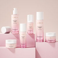 高級品30ml 50ml 100ml空の平らな正方形のカスタムスキンケアボトルと瓶化粧品包装セットピンクガラス化粧品ボトル