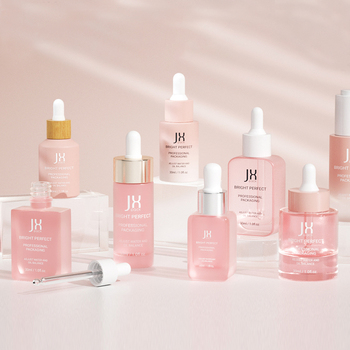 Nuevo diseño, conjunto de embalaje de cuidado de la piel personalizado de lujo rosa, bomba de loción vacía, botella de vidrio y tarro, botella de crema cosmética